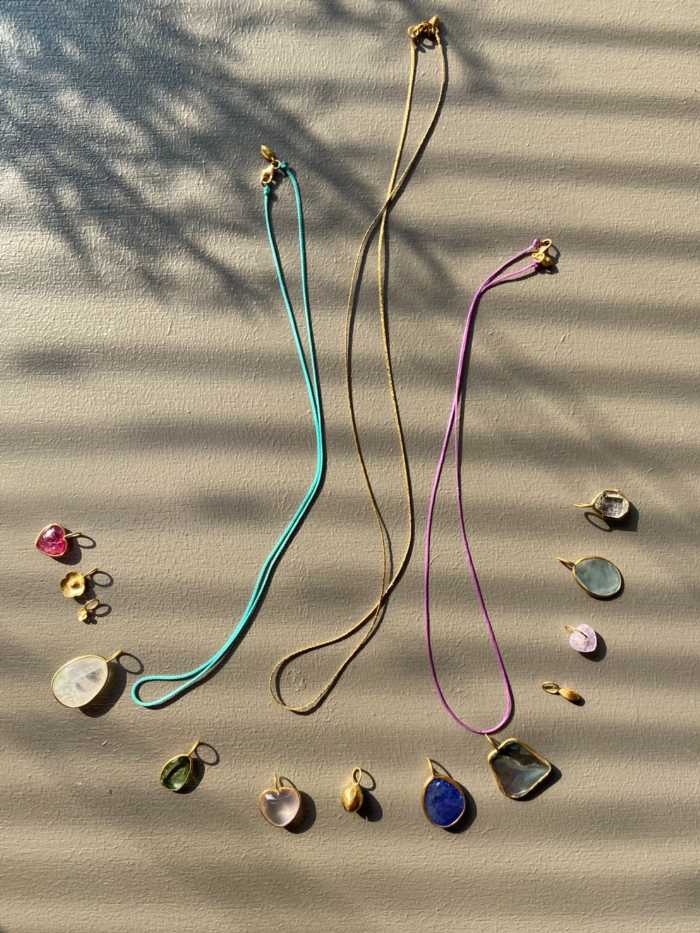 今回のトランクショーでは、カラーストーンやゴールドのチャーム、カラフルなコードを自由に組み合わせて、カスタムネックレスをオーダーできるスペシャル企画もご用意。