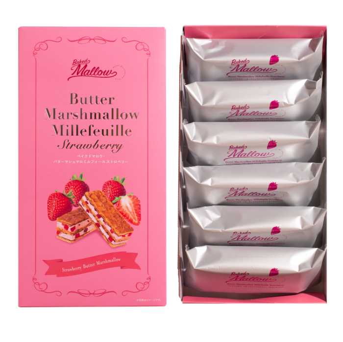 2025年7月30日(水)より、ベイクドマロウ大丸東京店にて発売されるのが、ファン待望の新作『バターマシュマロミルフィーユ ストロベリー』(6個入・1,728円/税込)。