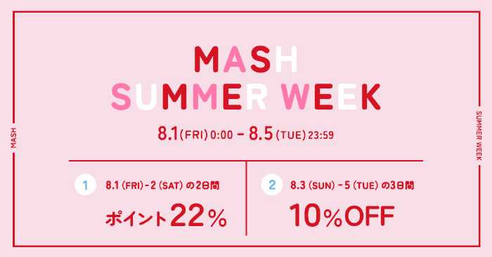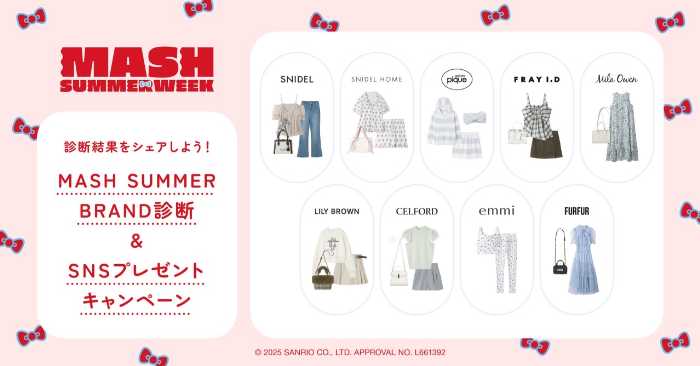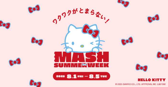 ファッションやビューティーを牽引するマッシュホールディングスが、2025年8月1日〜5日の5日間限定で「MASH SUMMER WEEK 2025」を初開催!記念すべき第1回目のミューズは、世界中で愛され続ける「ハローキティ」。限定アイテムや診断コンテンツ、豪華ノベルティなど、可愛さと特別感が詰まった企画が盛りだくさん♡この夏だけの限定体験をぜひお見逃しなく。