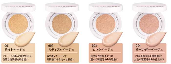 カラーはライトベージュ、ミディアムベージュ、ピンクベージュ、ラベンダーベージュの4色展開。