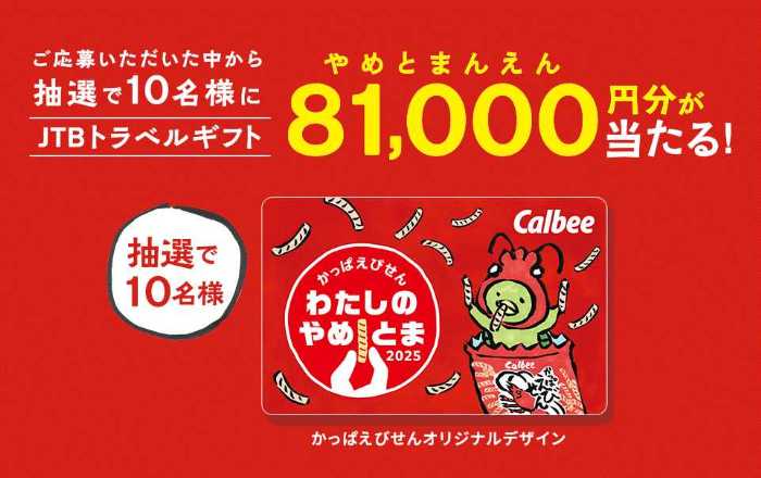 8月10日の「かっぱえびせんの日」を記念し、内容量10%増量パックも登場予定!さらに「やめとまかるた」最優秀作品発表や、旅行ギフトが当たるキャンペーンも実施。