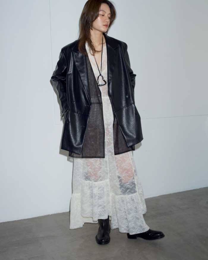 中でも人気の「サイドカットルーズデニム」や「チュールコンビフェイクレザージャケット」は、ラフさと品のバランスが絶妙。