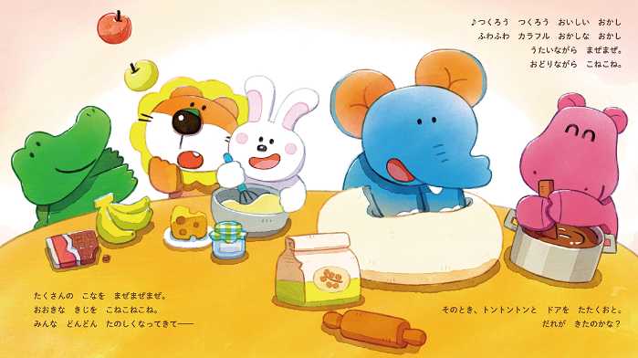 でも、歌ったり踊ったりしながら進んでいくお菓子作りのシーンは、読む人の心までほんわかとさせてくれます。まさに“たべっ子どうぶつ”らしい和気あいあいとした雰囲気が満載。