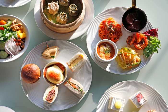全17種類のサンドウィッチに加え、『ホテル伝統のビーフシチュー』や点心など、和・洋・中さまざまな料理を楽しめます。