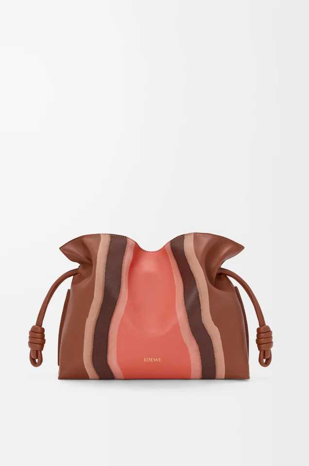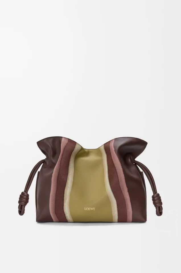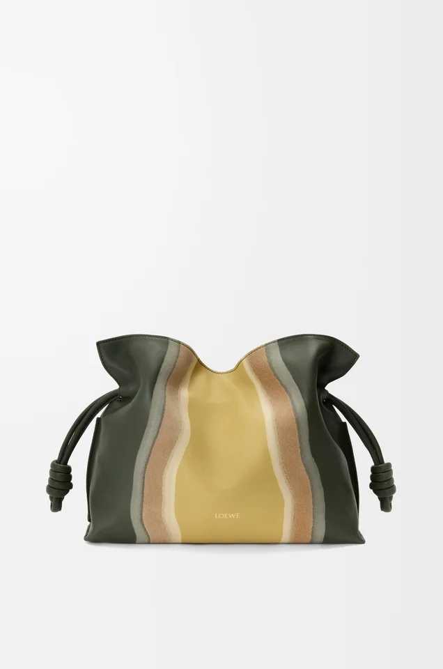 やわらかなフォルムとドローストリングのアクセントが魅力の「フラメンコクラッチ」も、ランドスケープ仕上げで登場。