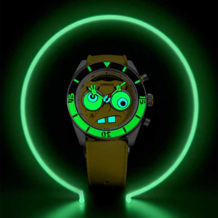 スポンジ・ボブの明るさと独創性をそのまま時計に詰め込んだ「THE FLEUSS CHRONOGRAPH SPONGEBOB SQUAREPANTS EYEDIAL LIMITED EDITION」。