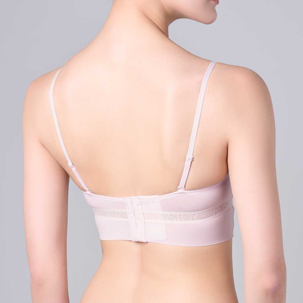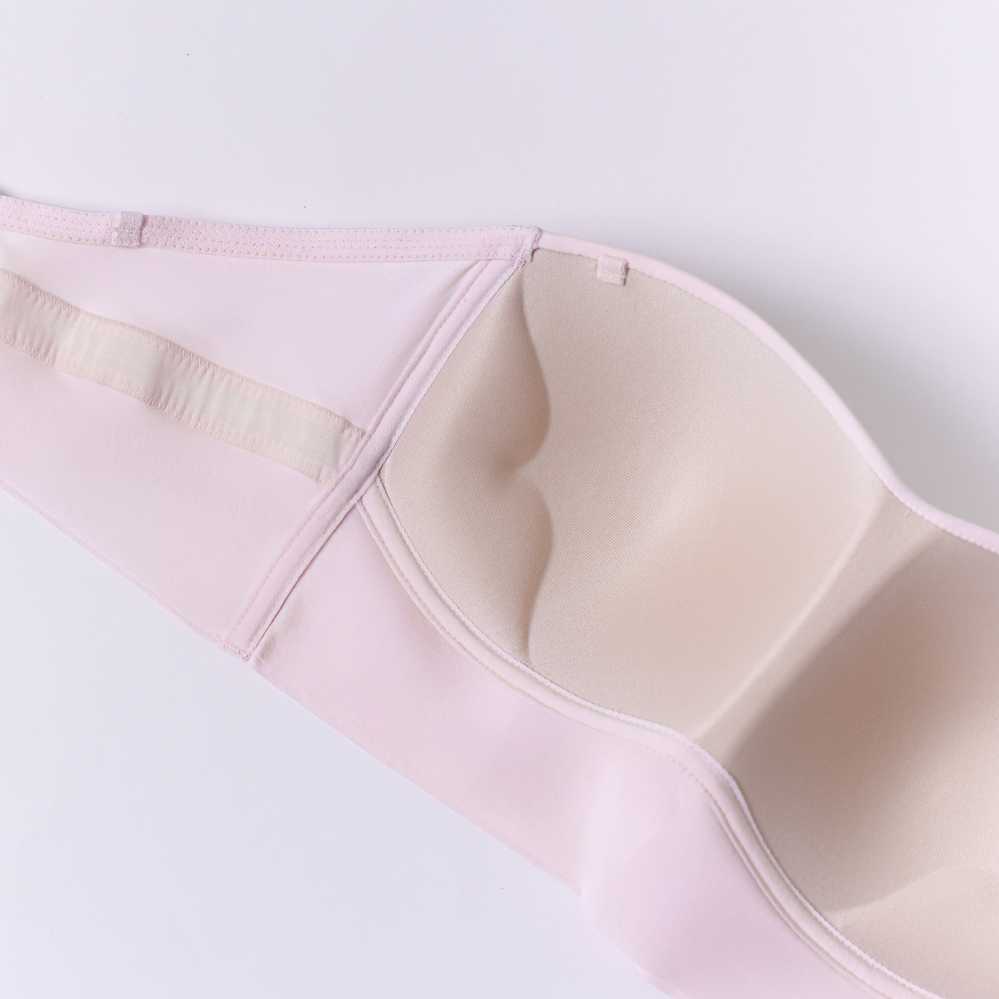 このブラの最大の魅力は、そのシームレス仕様とフィット感。取り外し可能な2Wayストラップはスタイリングに合わせて調整可能で、ストラップレスとしても使用できるため、肌見せスタイルにもぴったり。