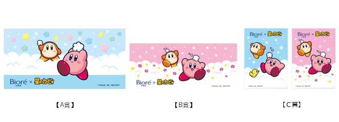 A賞はカービィデザインのバスタオル、B賞はフェイスタオル、C賞はクリアファイルセットです。お子さまたちのお手伝いも応援してくれるカービィと一緒に、毎日の手洗いや体洗いがもっと楽しくなります♪