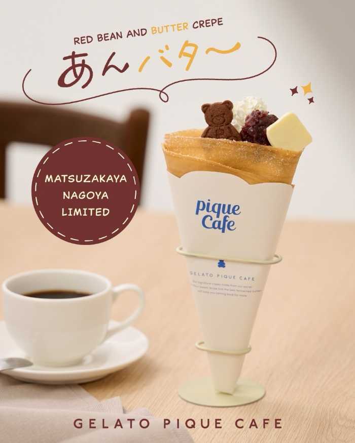 名古屋店限定の「あんバタークレープ」は、フランス産発酵バターと上品なあんこの絶妙な組み合わせ。ふわっと軽いホイップとピケベアクッキーのトッピングも可愛い一品です。