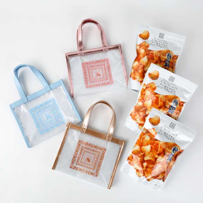 底マチがあるので安定感があり、ちょっとしたお出かけやギフトバッグにぴったり♡中身がうっすら透ける涼しげな見た目も魅力です。