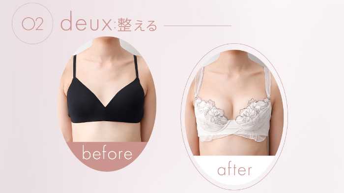 STEP2「deux」では、集めたバストをしっかり固定し、美しいバージスラインを形成。