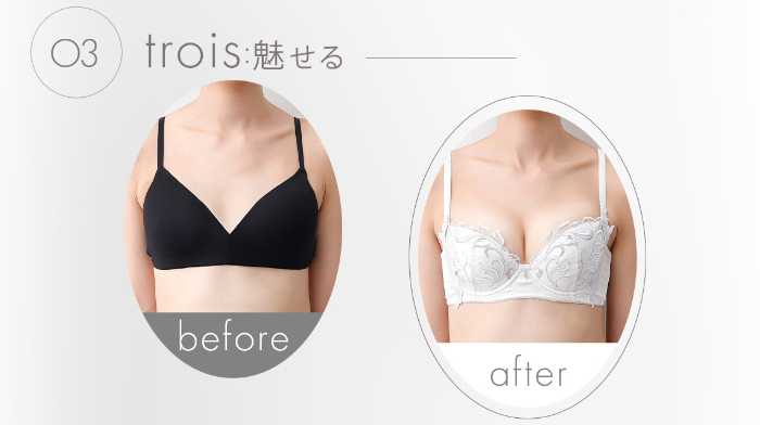 さらに、STEP3「trois」では高さと丸みを出して、ふっくらとした理想のデコルテに仕上げてくれます。