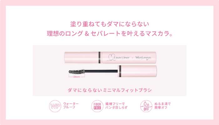 ラブ・ライナーならではの“繊維フリーなのにまつげ1.5倍”のロング感や、ダマになりにくいブラシはそのままに、K-Beautyのエッセンスを楽しめる仕上がりです♡