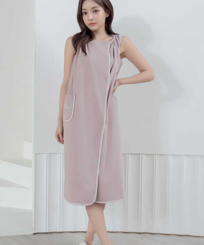 スナップボタン付きでスムーズに着脱でき、はだけにくい設計で安心。ポケットも付いており、スマホや小銭入れなどの小物も収納できます。