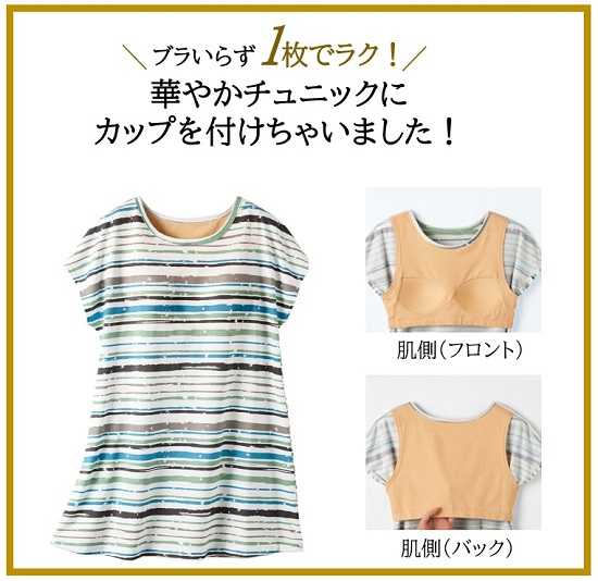 「カップ付きフレンチ袖チュニック」は、家ではノーブラ派という女性の声をもとに開発されたアイテム。