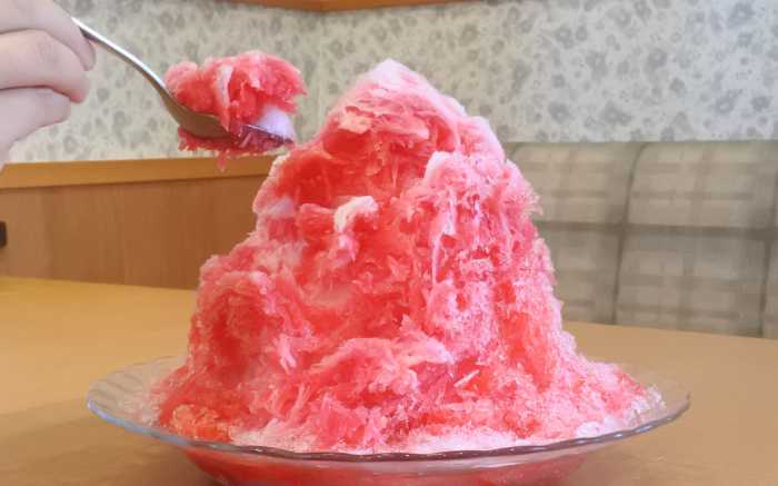 ジョイフルのかき氷みるくは、こだわりの純氷と丁寧な削り、そして甘くて優しい特製ミルクの三拍子そろった本格派。