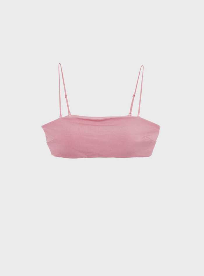 肌ざわりが心地よいベア天竺素材を使用した【NUE】の[バンドゥブラ]は、立体パッドで自然なバストラインを演出。