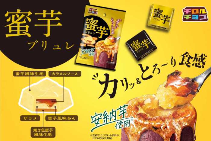 チロルチョコ新作は蜜芋ブリュレ♡W食感×高級感で癒しのご褒美