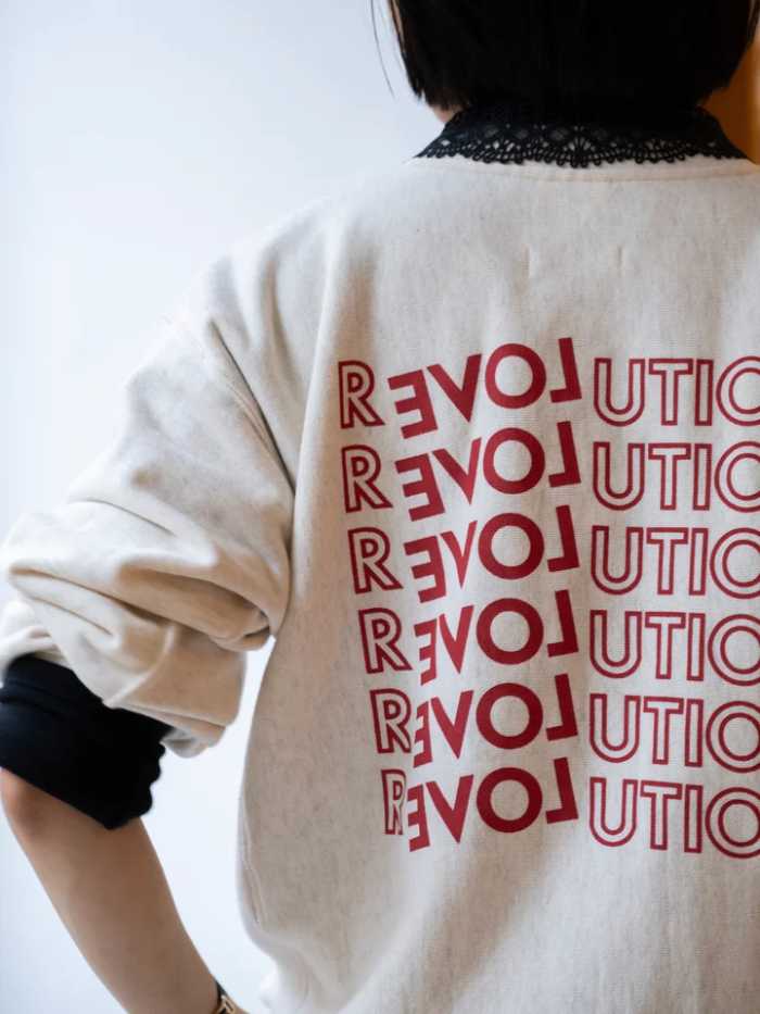 今回の別注スウェットプルオーバー(20,900円)は、RHCオリジナルのバックプリント「Revolution=R LOVE LUTION」が印象的。