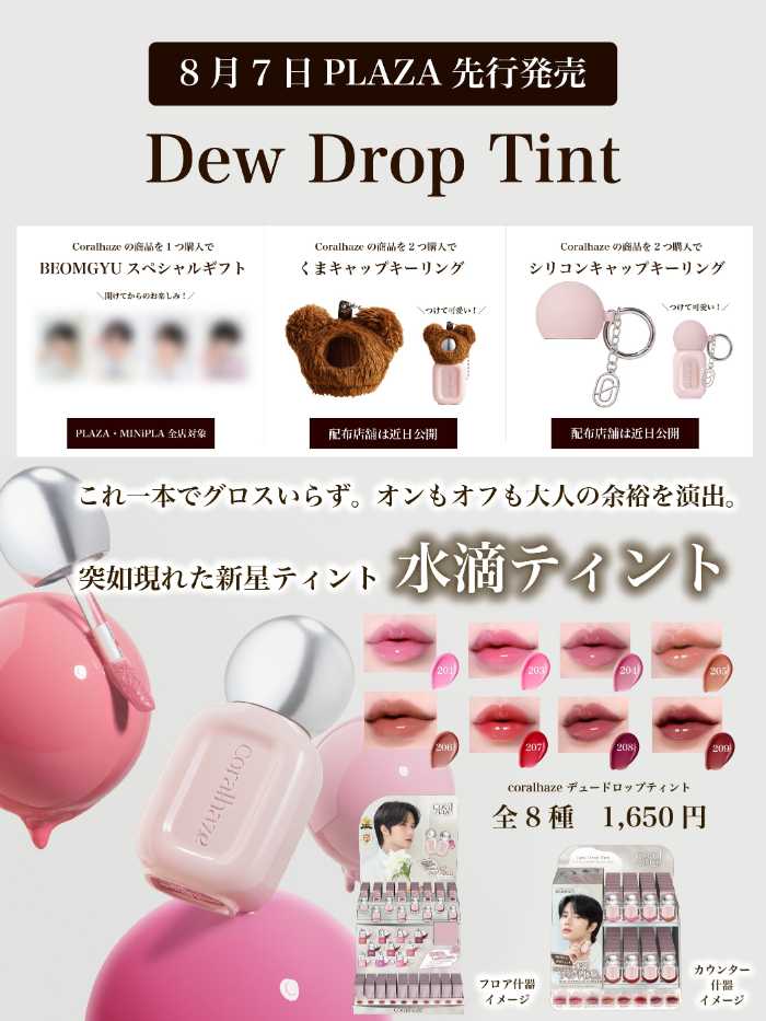 韓国コスメブランド「コーラルヘイズ」が、グローバルに活躍するTOMORROW X TOGETHERのBEOMGYUをブランドアンバサダーに迎えた特別プロモーションを、全国のPLAZAで開催!8月7日からは等身大パネルや限定ノベルティ、撮影時使用アイテムの展示など、ファン必見のコンテンツが盛りだくさんです。BEOMGYUと一緒に、この夏だけの特別な瞬間を楽しんでみませんか?♡