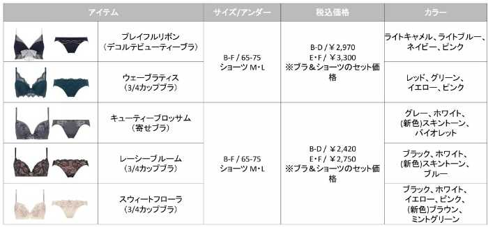サイズ:B〜Eカップ、アンダー65〜75(カラー:ベージュ/ネイビー/グレー/ラベンダー)