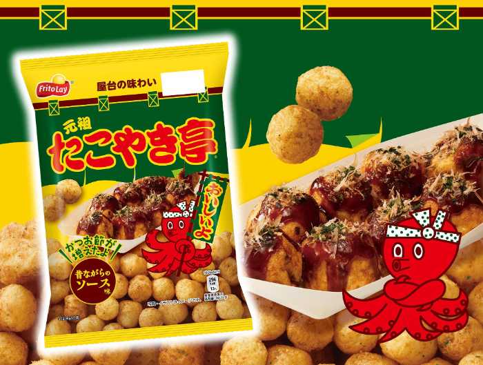 さらに、パッケージにはかつお節がたっぷりのったたこ焼きの写真が大きくプリントされ、見た目からもレトロ感を演出。夏祭りや縁日の記憶を思い出す、ノスタルジックなデザインにも注目です♪