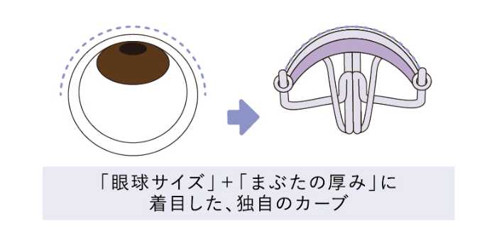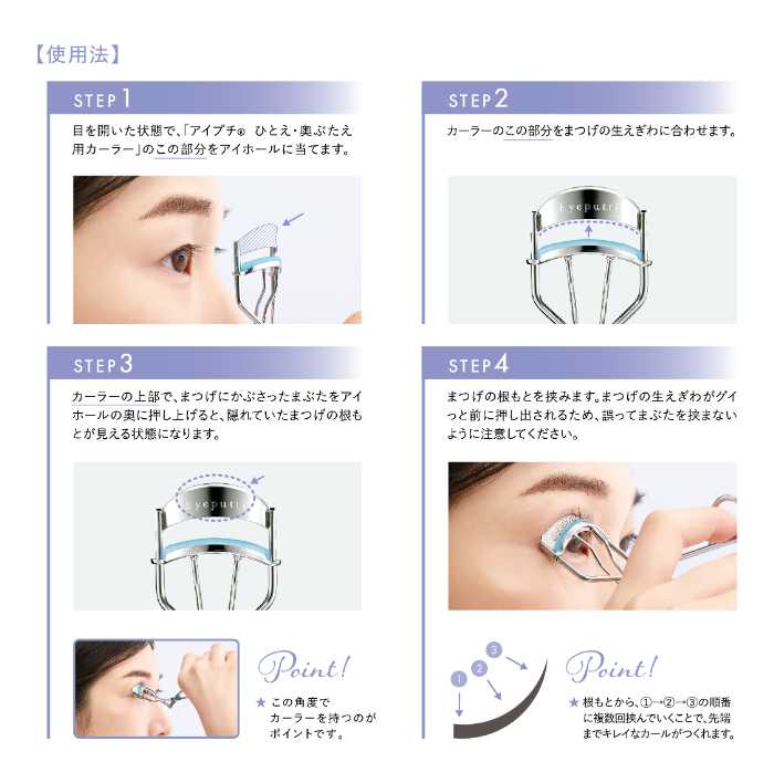 「アイプチ®ひとえ・奥ぶたえ用カーラー」は、ひとえ・奥ぶたえの目もと構造に合わせて設計された独自カーブとプレートが特長。
