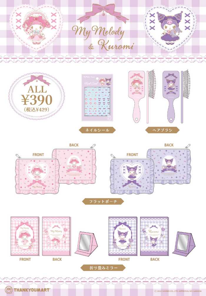 サンキューマートに、サンリオの大人気キャラ「マイメロディ」と「クロミ」のアニバーサリーを祝う限定アイテムが登場します。ふたりの魅力をぎゅっと詰め込んだスウィート&ロリータ風のグッズは、見ているだけでときめきが止まらない♡各アイテムはなんと税込429円というプチプラ価格で揃えられ、推し活やギフトにもぴったり。7月30日からオンライン先行予約もスタートし、全国店舗では8月中旬より順次販売されます。