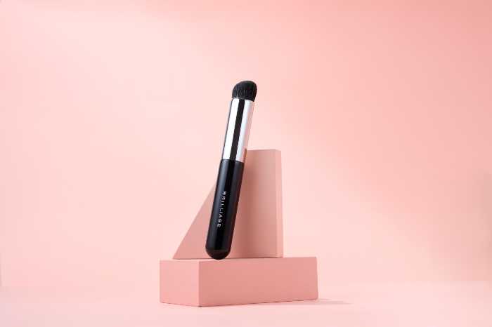 コンシーラーチークの塗布に欠かせないのが、ワイドフィンガーブラシ。毛先が斜め&ラウンド型で、まるで自分の指でメイクしているような心地よさ♪