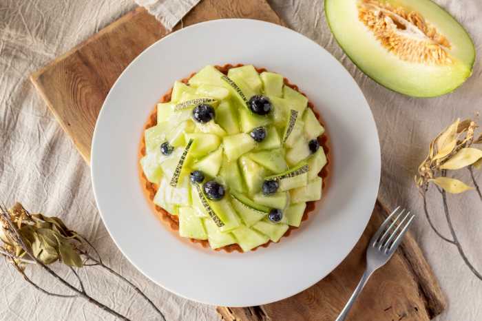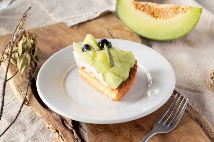 「メロンのタルト」(税込4,400円)は、ココナッツがほのかに香るタルト生地に、カスタードホイップとメロンをたっぷりと盛り付けた夏らしいケーキ。
