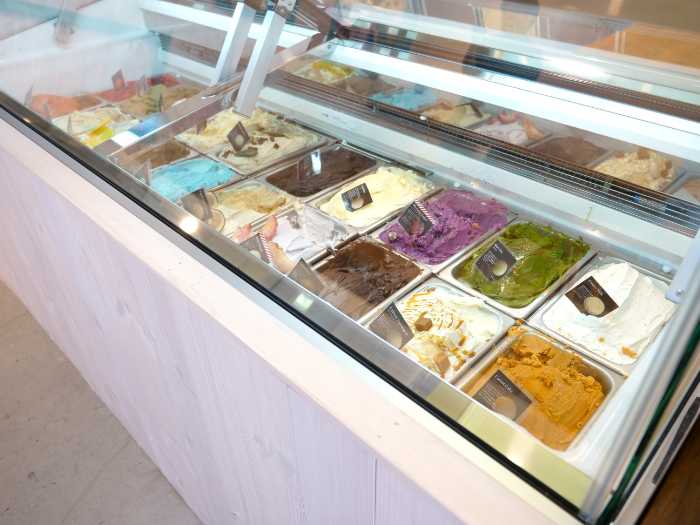 店内では、好きなジェラートを組み合わせて作る「シェイク」や、11色のカラーバリエーションが楽しめる「クリームソーダ」など、遊び心満載のメニューが充実しています。
