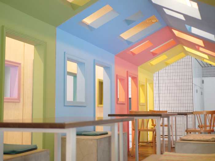 ポップでかわいい小部屋が連なるテラス席は、思わず写真を撮りたくなるほどの可愛さ。