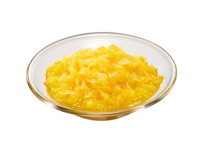 今回の主役は、ダイスカットされたマンゴーと、果汁漬けのつぶつぶオレンジ果肉。