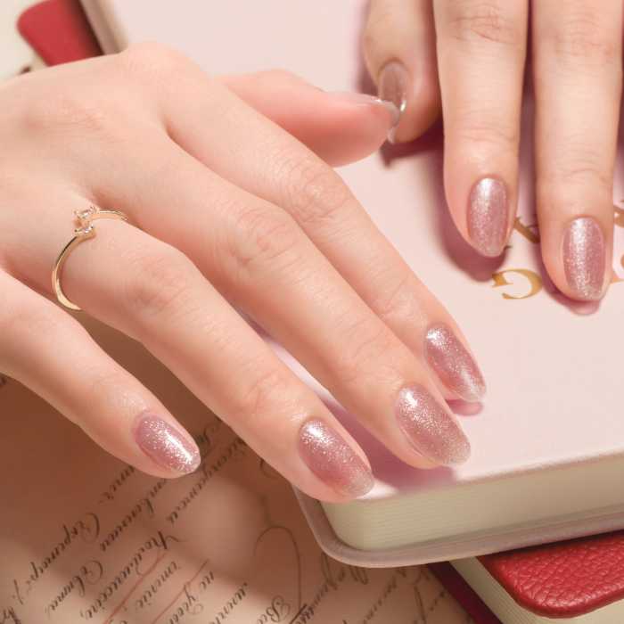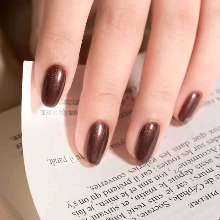 やさしいピンクラメを含むアンティークブラウンで、温かみのある手元を演出。