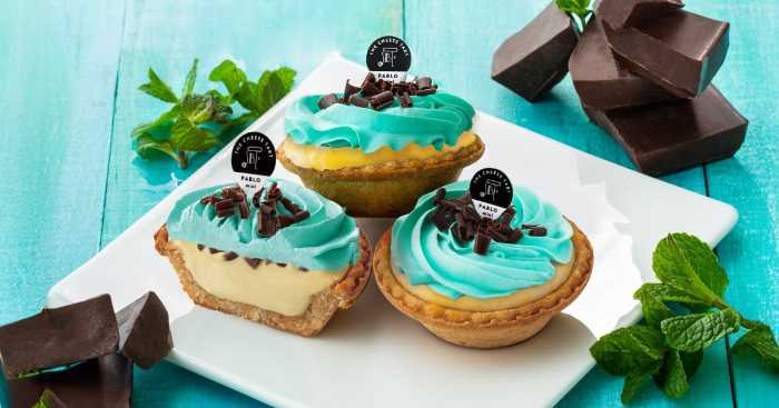 「PABLOmini チョコミント」は、香ばしく焼き上げた手のひらサイズの濃厚チーズタルトに、チョコチップを贅沢にトッピング。