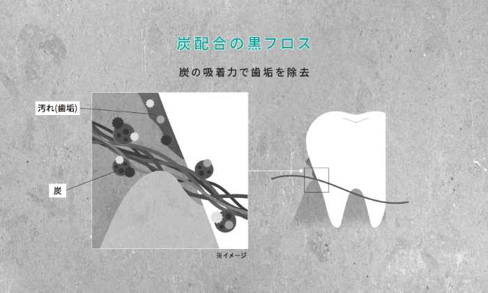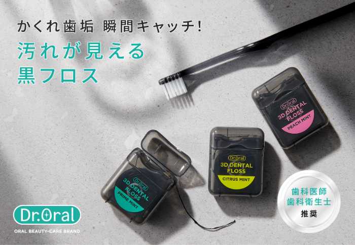 Dr.Oralの「3Dデンタルフロス」は、フロス本体が“黒”いのが特徴。この黒色には炭が配合されていて、歯垢や汚れをしっかり吸着。しかも、絡め取った汚れが目に見えるから、ケアの達成感もアップ!