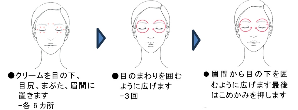クリームは朝晩のスキンケアの最後に、パール粒1コ分を気になる部分へ。目もと・口もと・首元まで、やさしくなじませていくことでより効果的に。