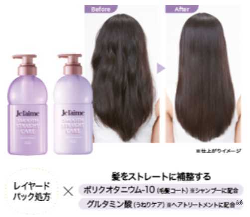 《スムースストレートケアタイプ》には、うねりケア成分※6を配合。キューティクルをしっかりコートし、湿気による広がりを防いで、なめらかで指通りのよいストレート髪へ導きます。