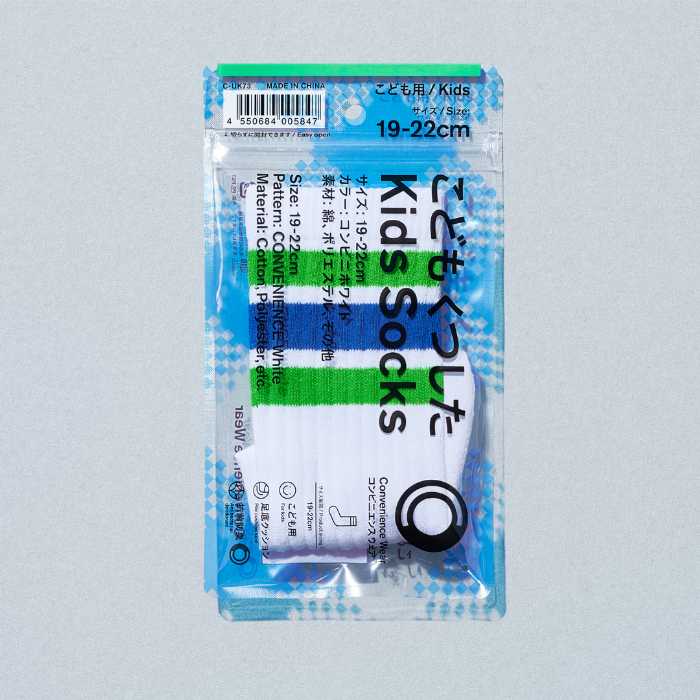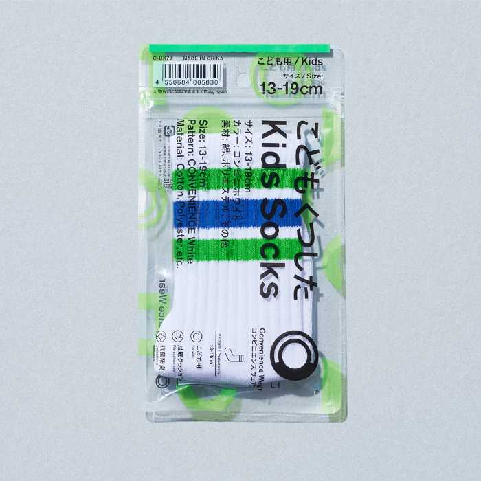抗菌防臭加工付きで、サイズは13〜19cmと19〜22cmの2種。カラーはコンビニホワイトで、価格は429円(税込)です♪
