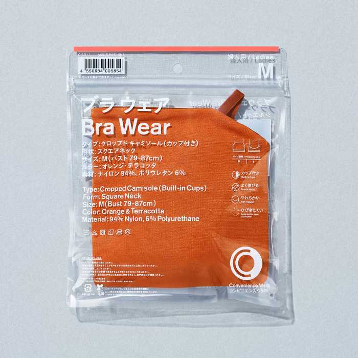 バストの肌側に縫い目がない一体型カップ仕様で、インナーとしてだけでなくファッションアイテムとしても使えるのがポイント。M/Lの2サイズ展開で、カラーはオレンジとテラコッタの2色。