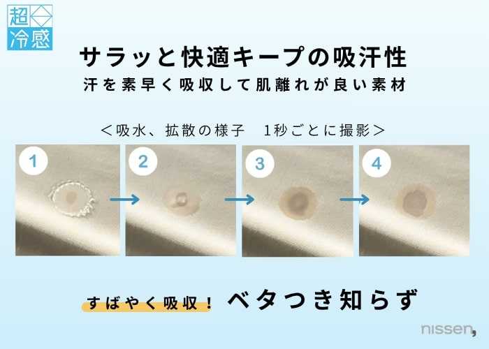 「超冷感」インナーは、冷感だけでなく吸汗速乾性も◎。汗をすばやく吸って拡散し、さらっとした肌離れをキープ。