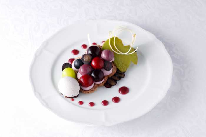 長野県産シャインマスカットとナガノパープルのシャルロット仕立て