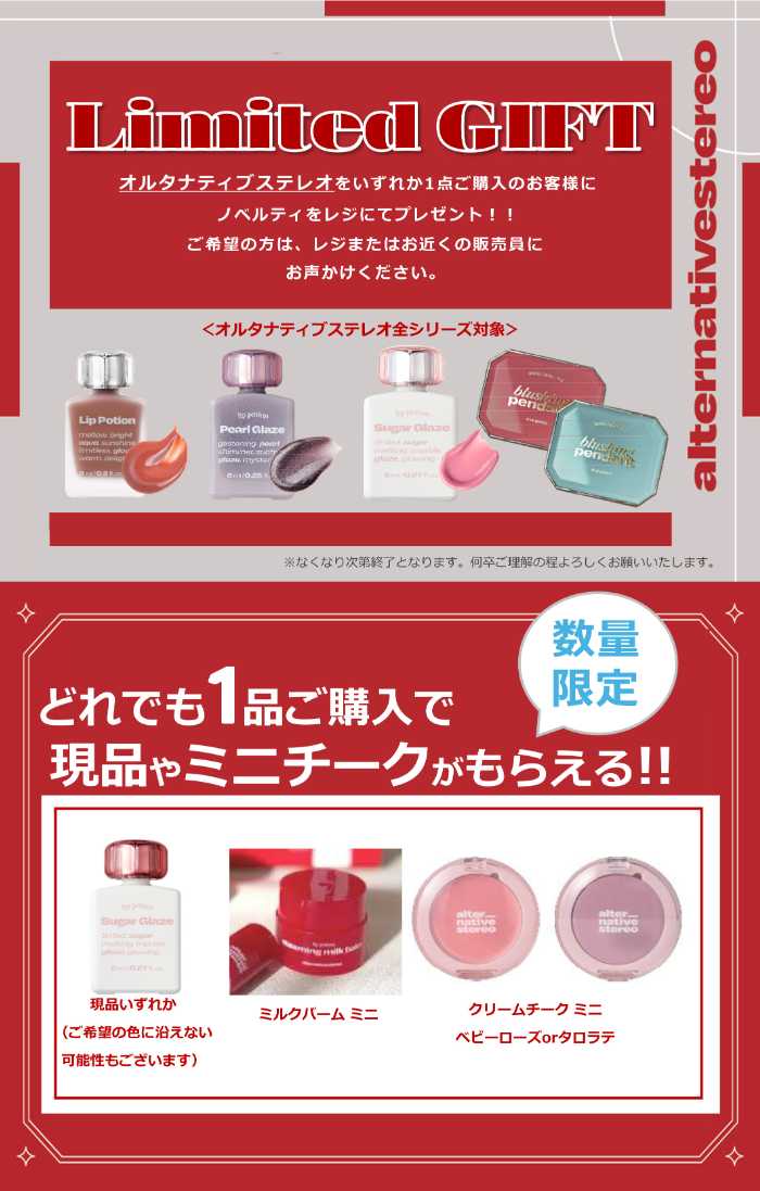 韓国コスメ好き必見♡「オルタナティブステレオ」の期間限定ポップアップが、ラフォーレ原宿のaiicosmeにて開催中です。ヴィンテージ感とLo-Fi HIP-HOPカルチャーを融合させたユニークな世界観と、感性くすぐるパッケージが話題のブランドがついに上陸。SNSでバズったリップ&チークやグロスなど人気アイテムが勢揃いで、全商品テスターあり&ノベルティも豪華!見た目も実力も妥協しないコスメをお探しの方、ぜひチェックして♪