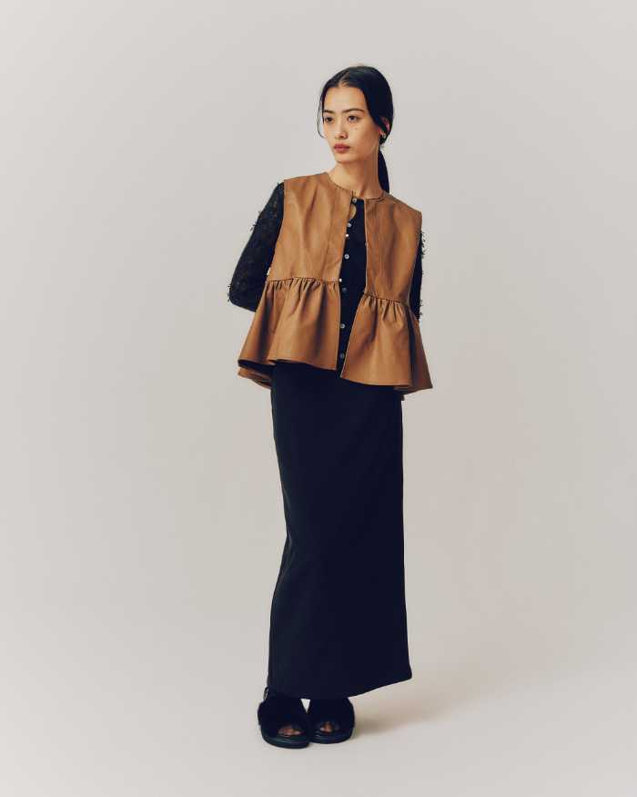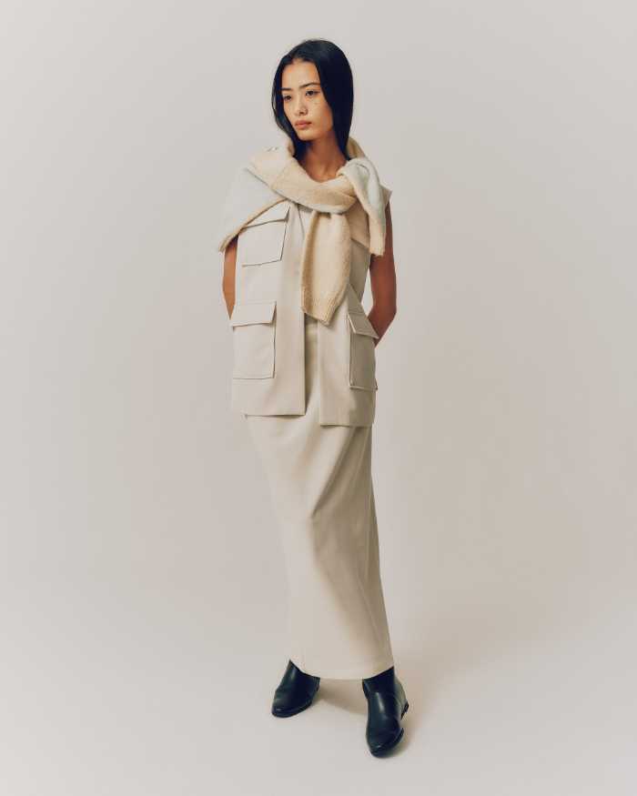 ラインナップには、トップス(6,930円)、パンツ(16,500円)、ベスト(11,000〜14,850円)、スカート(12,100円)など、幅広く展開。