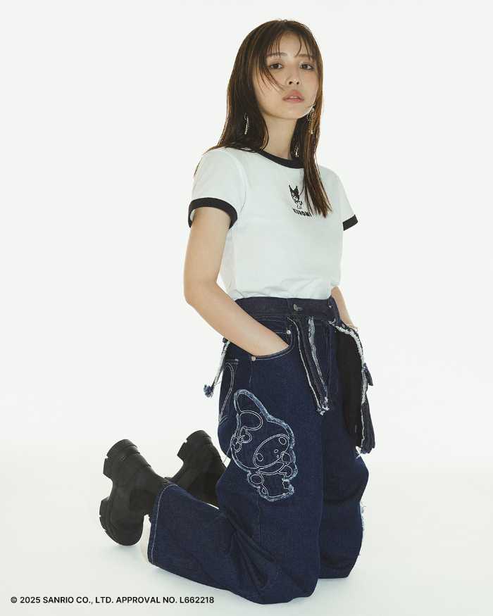 ハートモチーフが散りばめられたステッチデニム、ラメやラインストーンが輝く刺繍Tシャツなど、甘くてエッジィなデザインが魅力です。