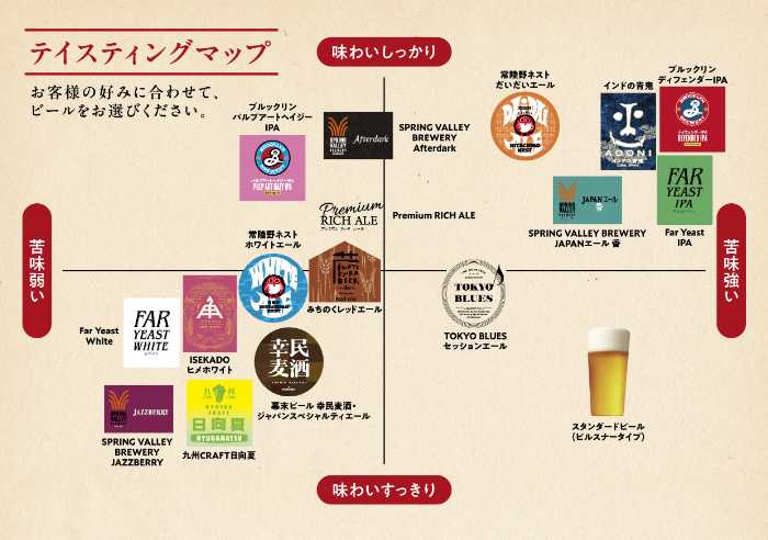 京王プラザホテル館内8店舗では、ブルックリンや常陸野ネスト、スプリングバレーなど国内外の人気ブルワリーのビールが勢ぞろい。