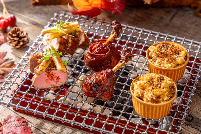 五感を刺激するスモーキーな香り、シェフの技が光る肉料理、スタイリッシュに盛られた秋色スイーツ…。
