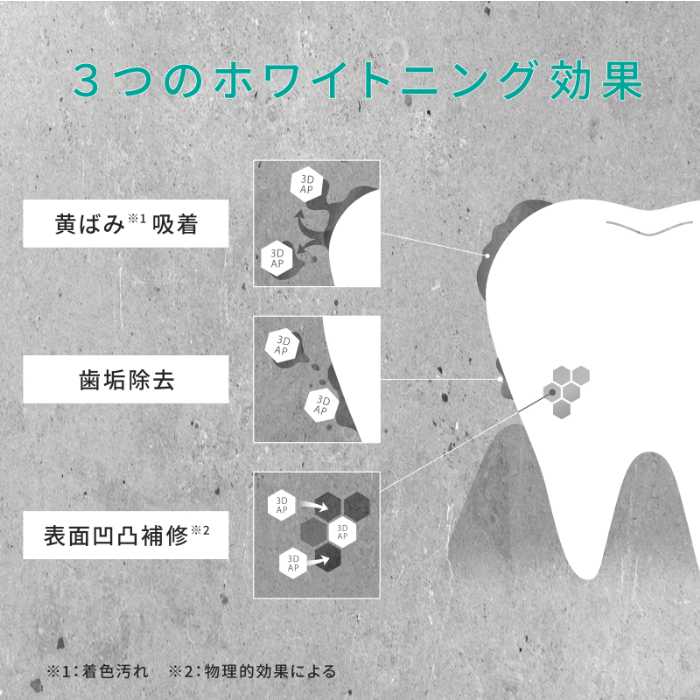 3Dホワイトニングパウダーは、バイオアパタイトと共同開発した「バイオ3Dアパタイト®*」をシリーズ最高濃度の40%で配合。