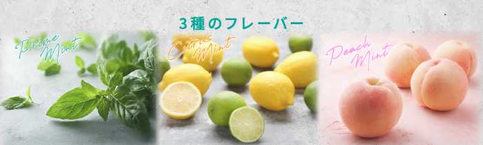 ミントの爽快感が際立つ「プライムミント」、柑橘のフレッシュ感が広がる「シトラスミント」、やさしい甘さの「ピーチミント」、そして今回限定の「グレープミント」。