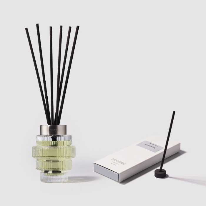 ディフューザーは330mL(15,000円)、レフィル320mL(11,000円)、リード880円、インセンスは30本入り3,300円と、ライフスタイルに合わせて選べるラインナップ。